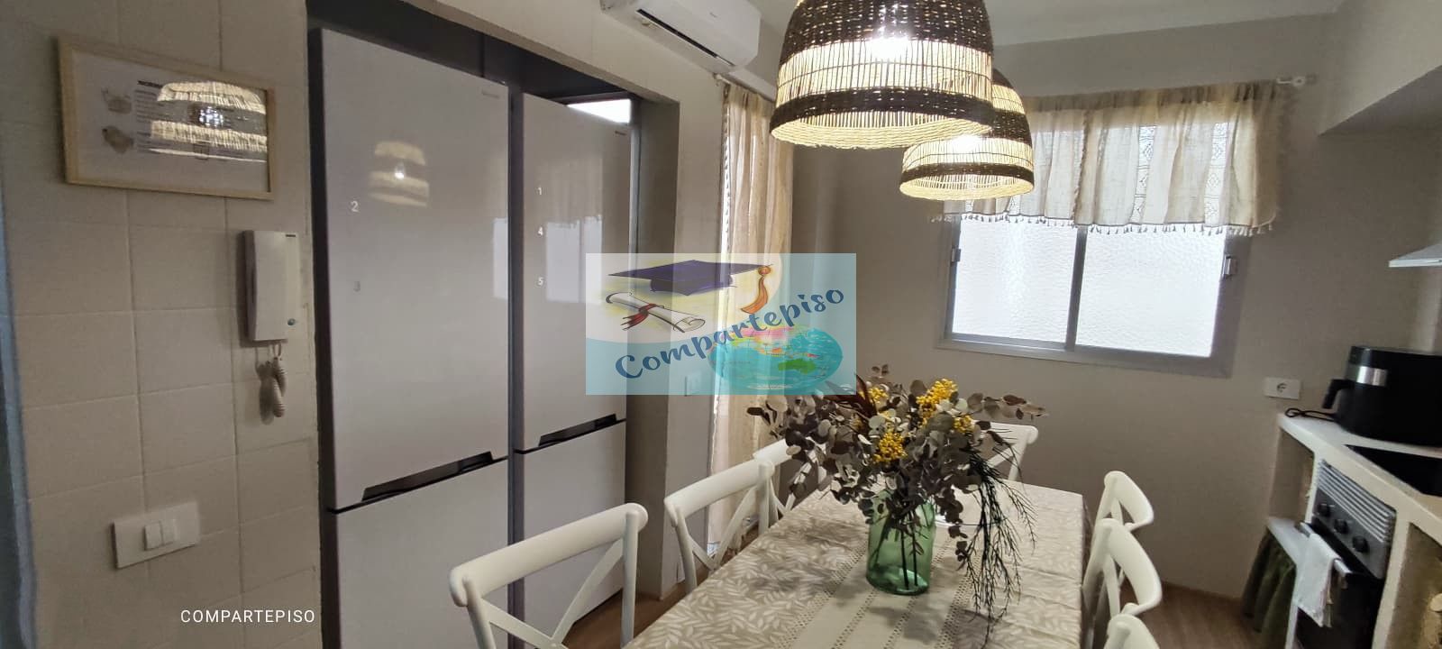 Cocina equipada, para que cocines tus platos preferidos, una gran mesa por si quieres compartirla con tus compañeros.