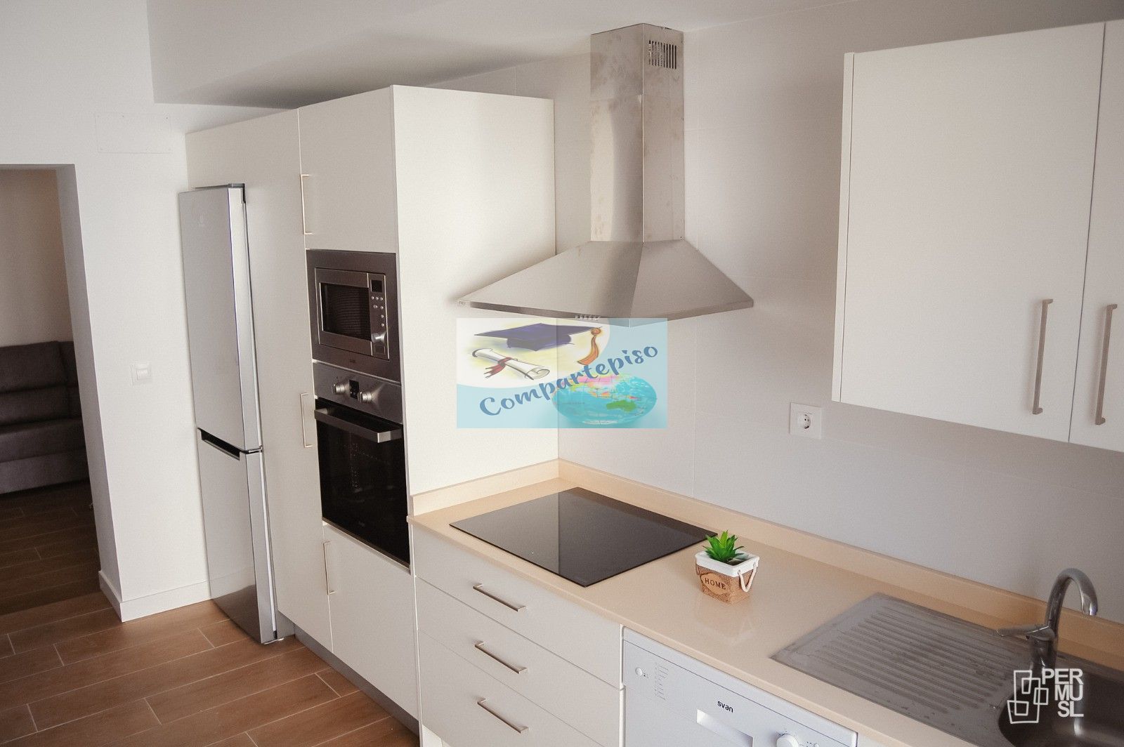 Tiene un salón grande, ver la TV o sentarte en ese sofá y compartir unos ratos divertidos con tus compañeros de casa.