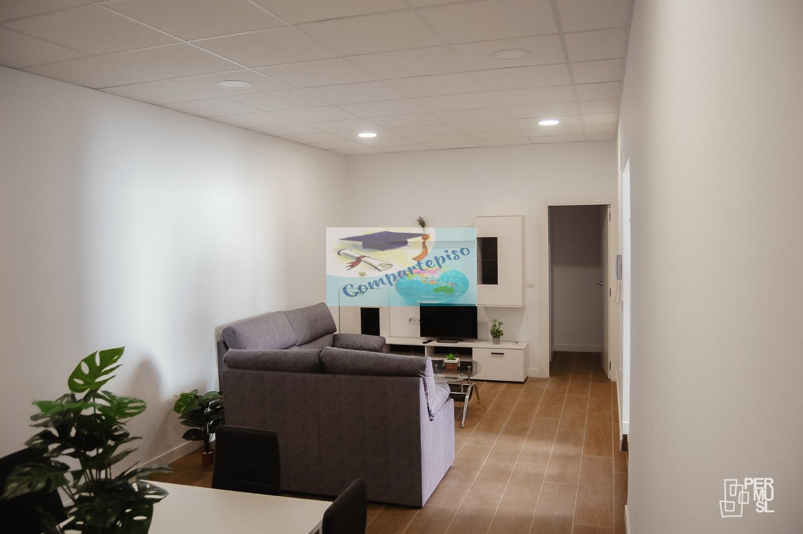 Tiene un salón grande, ver la TV o sentarte en ese sofá y compartir unos ratos divertidos con tus compañeros de casa.