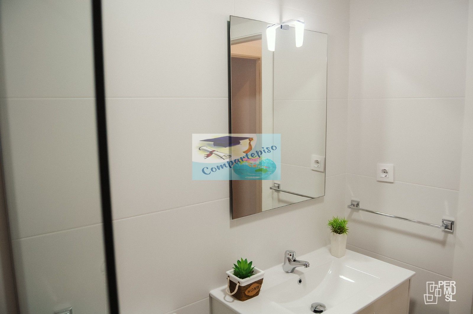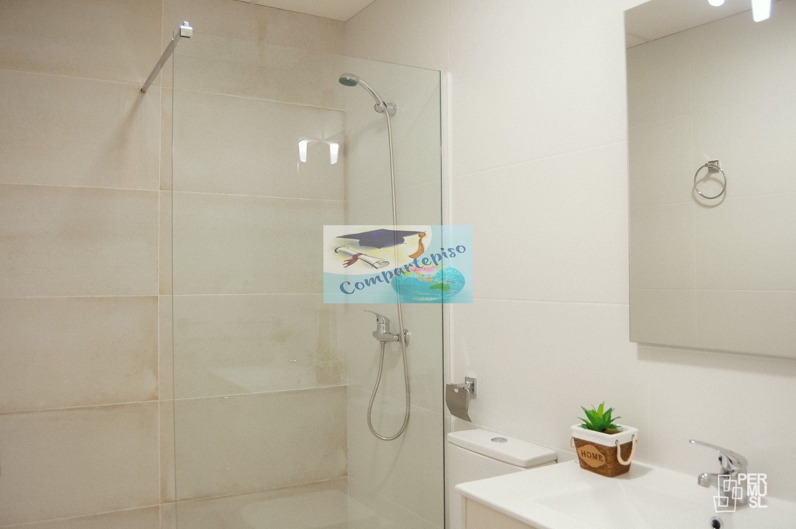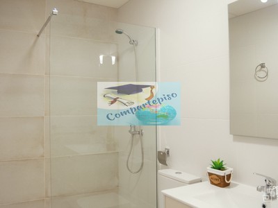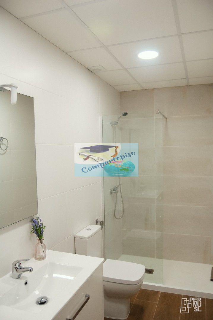 Tiene 2 baños, que ya tendrás que elegir con quién lo compartes de tus compañeras. En eso no te puedo ayudar. Pero ya sabes que en lo demás y en lo que necesitéis (ya que me encargo de vosotros durante todo el curso). Aunque imagino que vais a ser buenos.