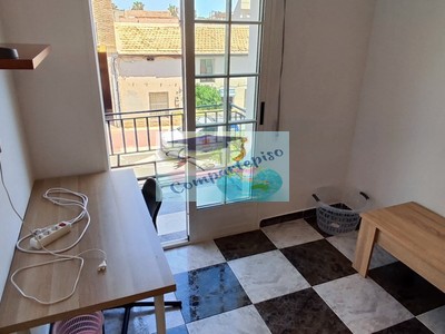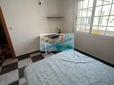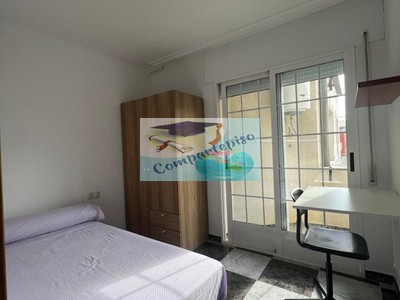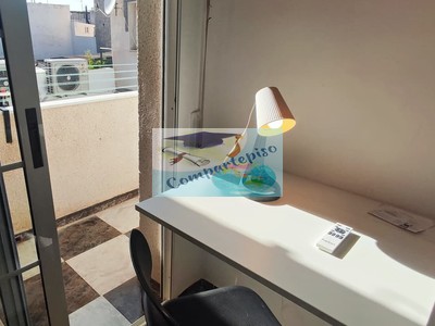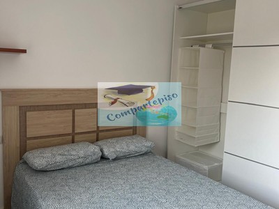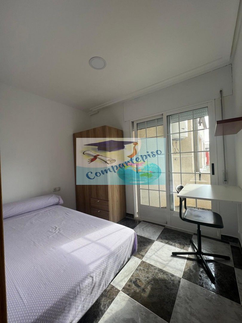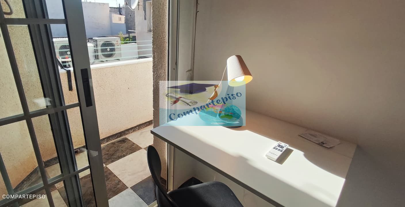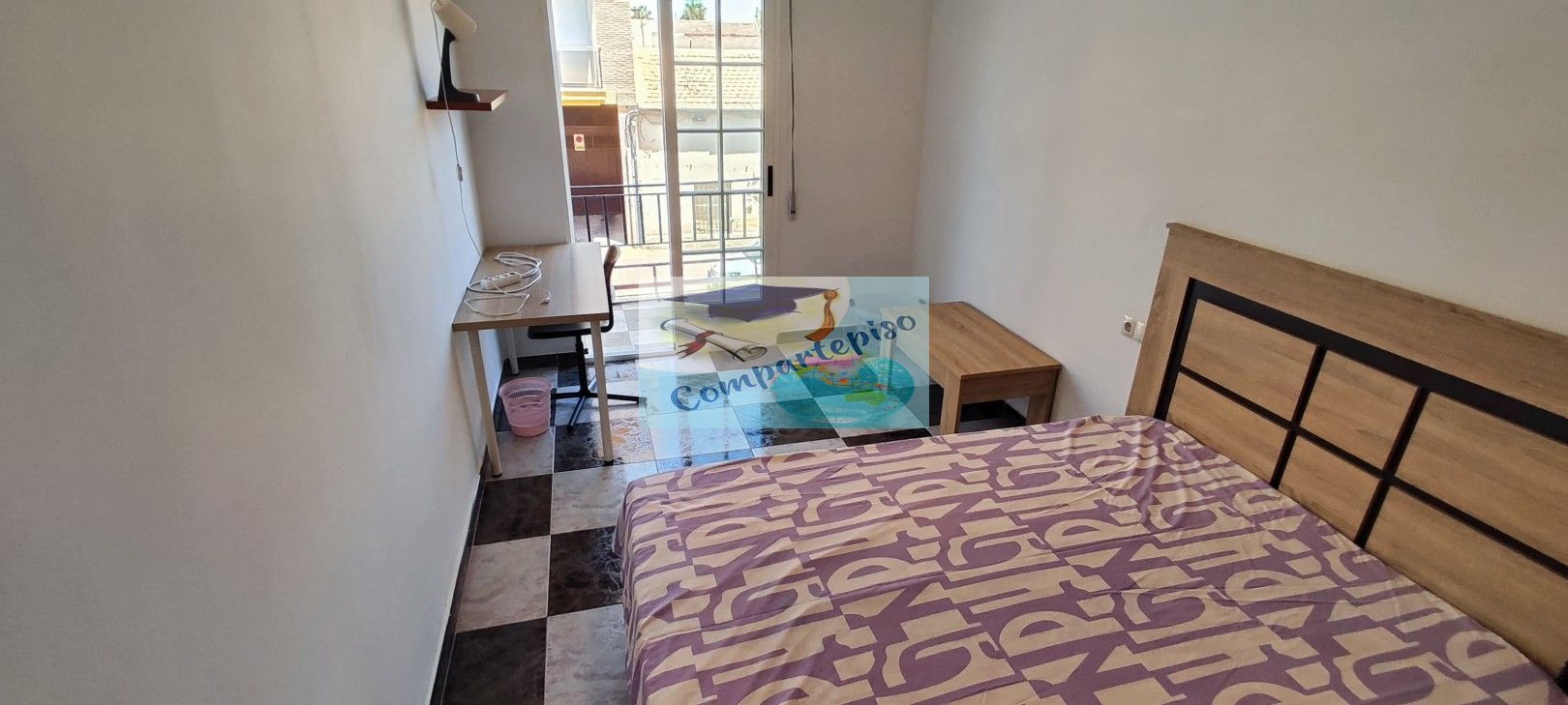 La primera habitación cuenta con una cama de matrimonio de 1,35cm, escritorio con silla, armario empotrado y balcón.